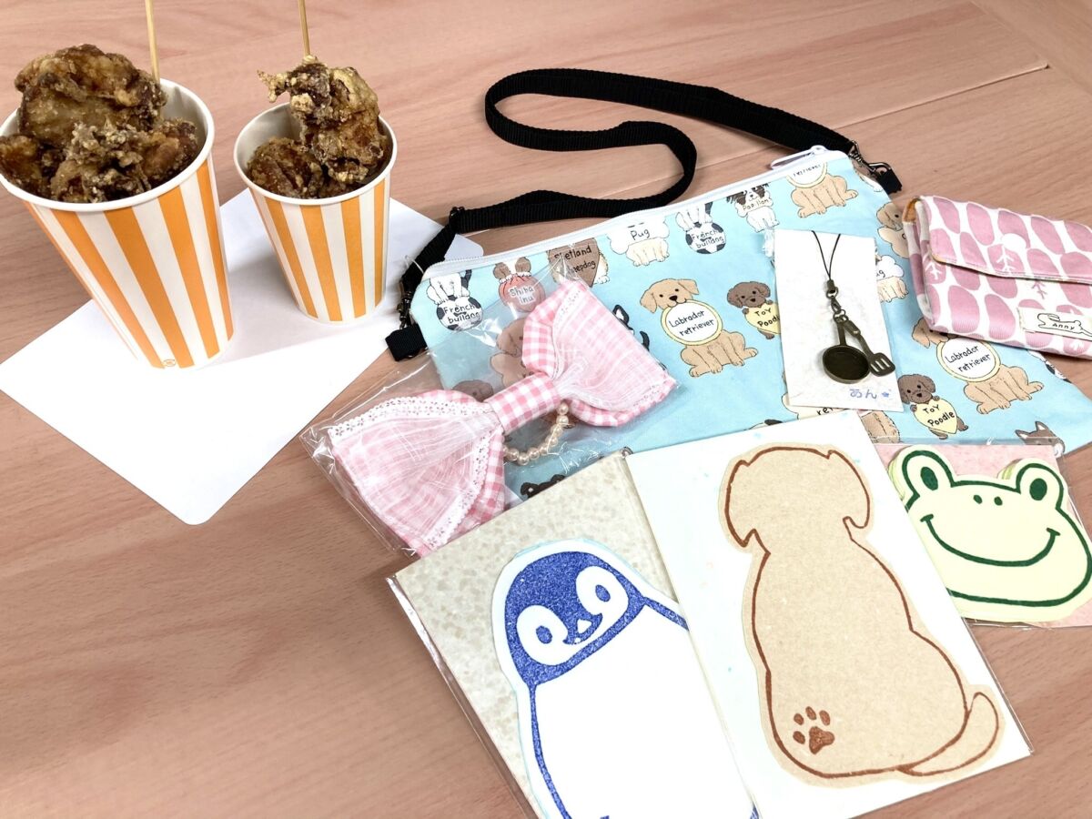 今回は人気メニューのからあげ、手作り小物や紙すき製品などの雑貨を販売します。